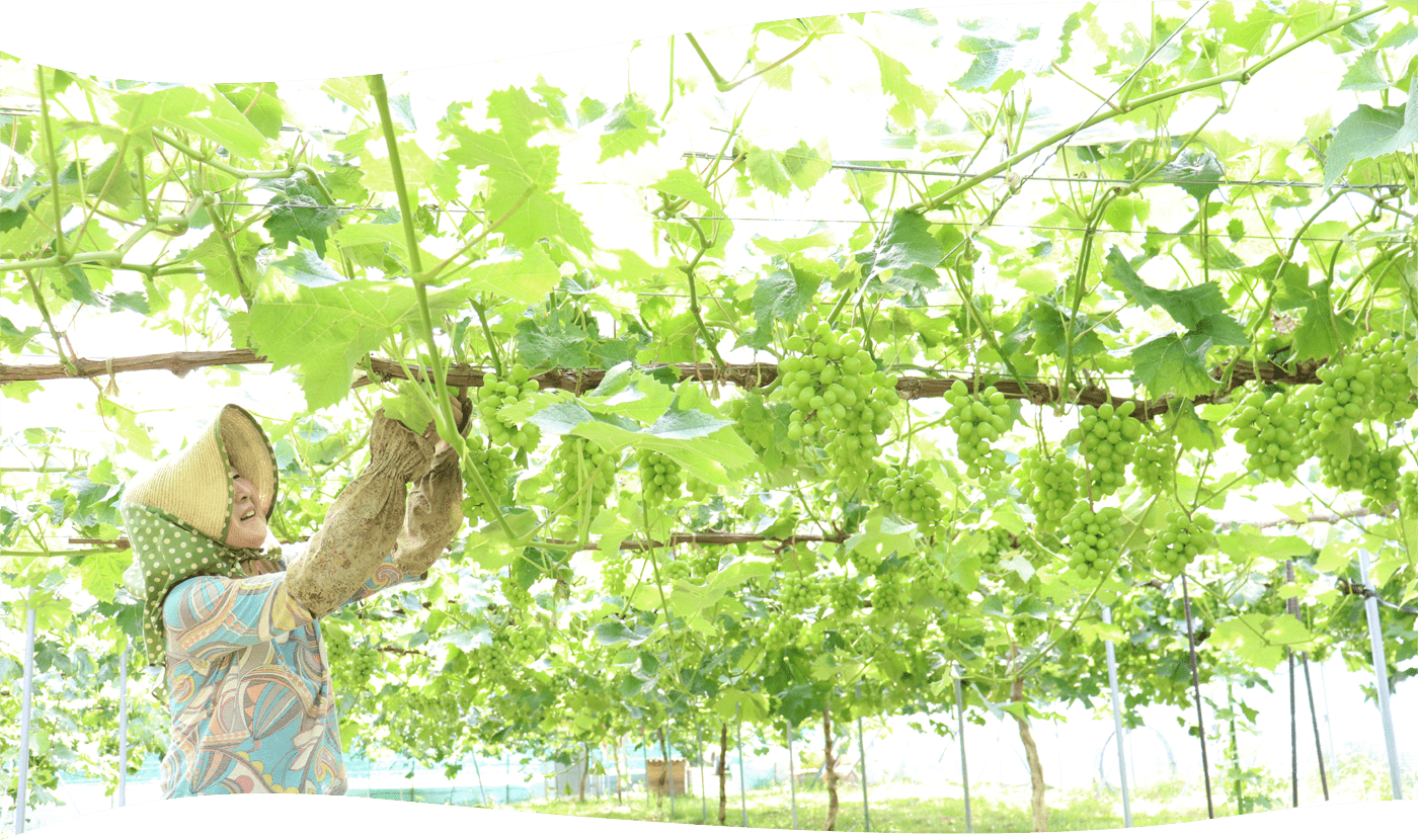 粒が大きく楕円形で果皮の色は黄緑色で薄く果肉と密着しているため皮ごと食べることができます。非常に甘くお土産にも喜ばれます。
